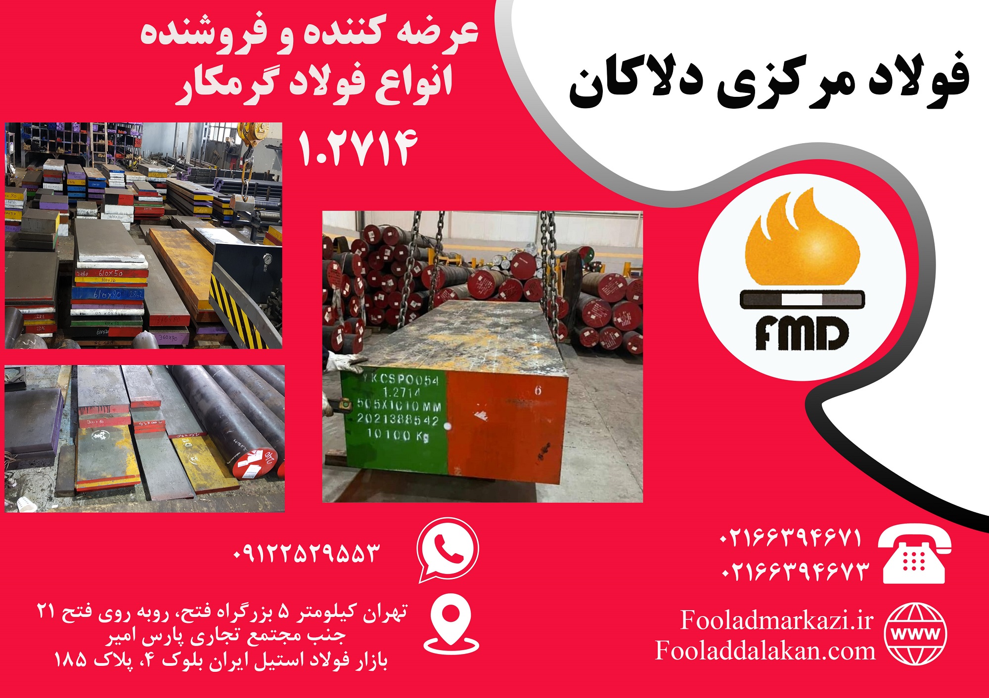 فولاد گرمکار 1.2714 یا به اختصار 2714 دارای کربن پایین و نیکل نسبتا بالا می باشد و دربرابر ضربه مقاومت خوبی دارد. فولاد 1.2714 امکان آنیل کاری برای فولاد 1.2714 نیز وجود دارد. شرکت فولاد مرکزی دلاکان از عمده عرضه کنندگان و فروشندگان فولاد 2714 در بازار فولاد استیل ایران می باشد. از کاربردهای فولاد قالب پلاستیک 1.2714 می توان به : خالی کردن و ایجاد قالب یاطاقان ساخت غلتک ساخت تیغه های برشی شما می توانید برای سفارش این محصول با کارشناسان فروش ما تماس حاصل فرمایید. تلفن: 66791306 66797293 همراه: 09122529553 نشانی: تهران، کیلومتر 5 بزرگراه فتح، روبه روی فتح 21، جنب مجتمع تجاری پارس امیر، بازار فولاد استیل ایران، بلوک 4، پلاک 185