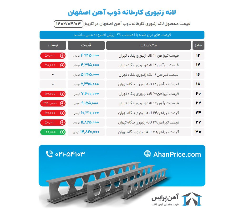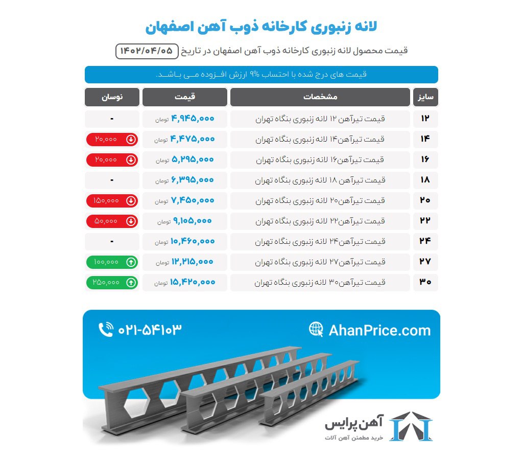 اعلام موجودی تیرآهن لانه زنبوری