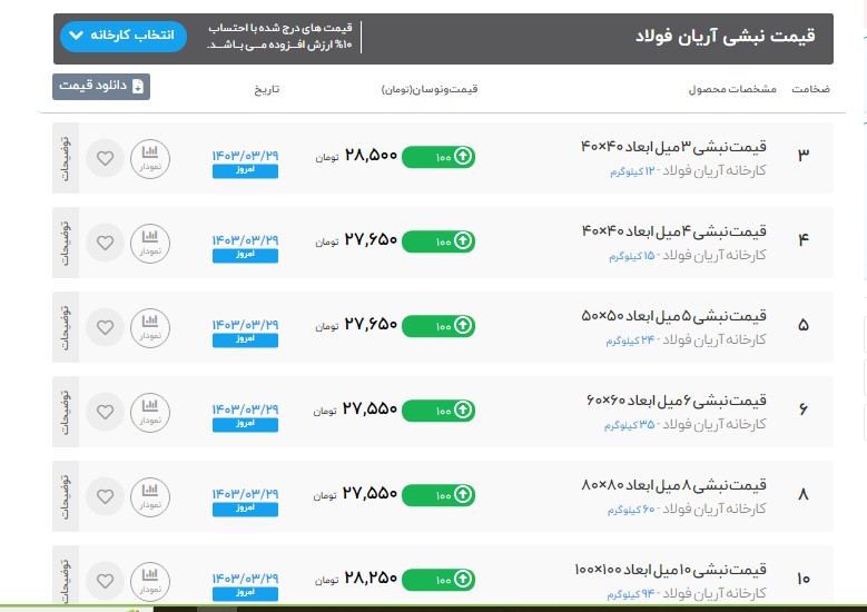 📆 سهشنبه 08 خرداد ماه 1403 👈#نبشی 6 متری اصفهان - بارگیری از انبار تهران سایز 4 ضخامت 4 ⬅️ 29700 تومان سایز 5 ضخامت 5 ⬅️ 29700 تومان ◻️ بدون تغییر نسبت به آخرین نرخ اعلامی روز گذشته 👈#ناودانی 6 متری اصفهان - بارگیری از انبار تهران سایز 8 6 متری ⬅️ 31700 تومان سایز 10 6 متری ⬅️ 31700 تومان سایز 12 6 متری ⬅️ 31700 تومان ◻️ بدون تغییر نسبت به آخرین نرخ اعلامی روز گذشته 👈#سپری 6 متری اصفهان - بارگیری از انبار تهران سایز 4 6 متری ⬅️ 31500 تومان سایز 5 6 متری ⬅️ 31500 تومان ◻️ بدون تغییر نسبت به آخرین نرخ اعلامی روز گذشته ✅ثبت سفارش،مشاوره و ارتباط با کارشناسان فروش: #آهن آرسام ☎️ 09337494534 ☎️ 09939481108 واتساپ و روبیکا: 09337494534 وبسایت: Www.arsam24.ir لینک تلگرام: https://t.me/ARSSAM24