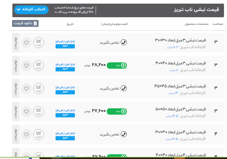 🗓 سه شنبه 22 خرداد ماه 1403 🗓 💲قیمت نبشی ناب تبریز قیمت ها با احتساب 10 درصد ارزش افزوده میباشد طول:6متر نبشی40*40 ضخامت 4 280000 ریال نبشی50*50 ضخامت 4 275000 ریال نبشی50*50 ضخامت 5 273000 ریال نبشی60*60 ضخامت 5 276000 ریال نبشی70*70 ضخامت 7 280000 ریال نبشی80*80 ضخامت 8 تماس بگیرید #قیمت #نبشی #ناب_تبریز #کارخانه مشاهده قیمت نبشی https://t.me/tirahanbandali