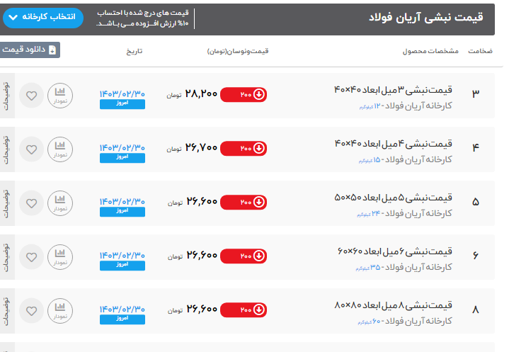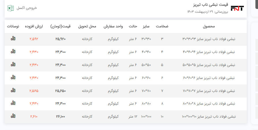 " فولاد جاوید بناب " با سلام و عرض ادب *قیمت روز یکشنبه ۱۴۰۳/۰۲/۳۰ 🔹نبشی 40*3 سبک : ۲۹۲۰۰۰ ریال 🔹نبشی 40*3 : ۲۸۲۰۰۰ ریال 🔹نبشی 40*4 سبک : ۲۸۲۰۰۰ ریال 🔹نبشی 40*4 : ۲۸۲۰۰۰ ریال 🔹نبشی 50*3 سبک : ۲۹۲۰۰۰ ریال 🔹نبشی 50*3 : ۲۸۲۰۰۰ ریال 🔹نبشی 50*4 سبک : ۲۸۲۰۰۰ ریال 🔹نبشی 50*4 : ۲۸۲۰۰۰ ریال 🔹نبشی 50*5 سبک : ۲۸۲۰۰۰ ریال 🔹نبشی 50*5 : ۲۸۲۰۰۰ ریال 🔹نبشی 60*3 : ۲۹۲۰۰۰ ریال 🔹نبشی 60*4 : ۲۸۲۰۰۰ ریال 🔹نبشی 60*5 : ۲۸۲۰۰۰ ریال 041-37780433-6 t.me/javidsteel_bonab www.javidsteel.co Telegram فولاد جاوید بناب فولاد جاوید بناب تولیدکننده انواع نبشی ومقاطع فولادی