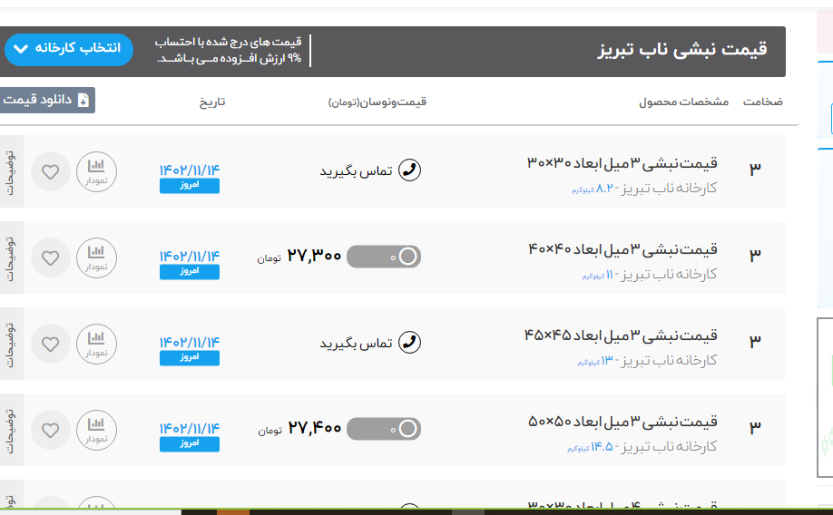 اعلام موجودی نبشی آهن یاب ❇️ لیست کالای فولاد ناب تبریز : 📅 شنبه : ۱۴۰۲/۱۱/۱۴ (ثبات قیمت) ♦️ نبشی ۴*۴ 💵27350 تومان ♦️نبشی ۵*۵ 💵27250 تومان ♦️ نبشی۶*۶ 💵27050 تومان ♦️نبشی ۷*۷ 💵27250 تومان
