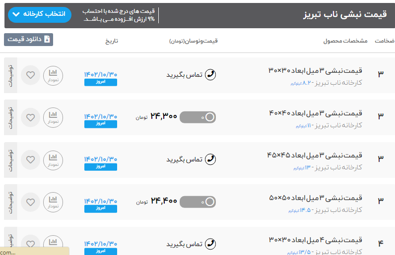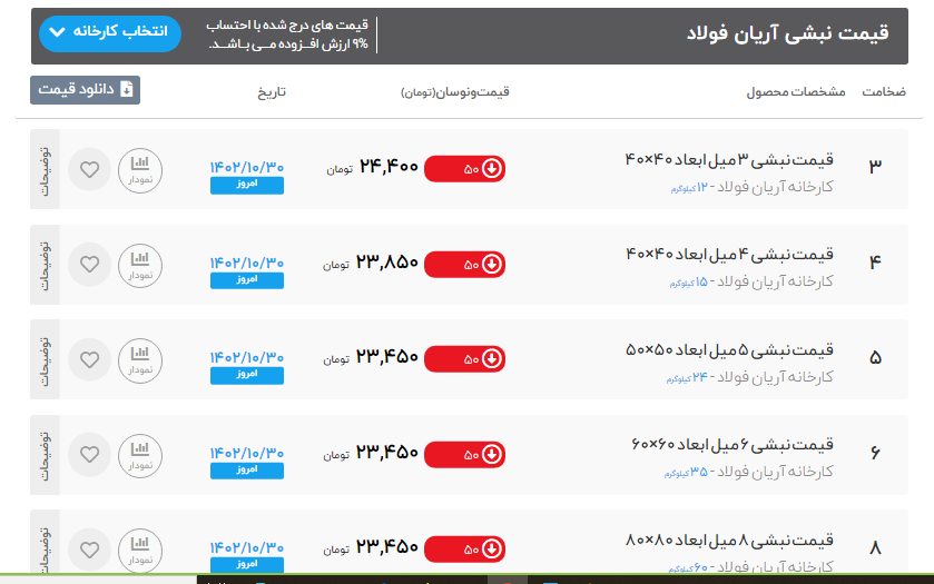 اعلام موجودی نبشی آهن یاب لیست کالای فولاد ناب تبریز : 📅 شنبه : ۱۴۰۲/۱۰/۳۰ (ثبات قیمت) ♦️ نبشی ۴*۴ 💵24350 تومان ♦️نبشی ۵*۵ 💵24150 تومان ♦️ نبشی۶*۶ 💵23950 تومان ♦️نبشی ۷*۷ 💵24150 تومان