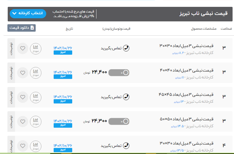 اعلام موجودی نبشی آهن یاب لیست کالای فولاد ناب تبریز : 📅 سه شنبه : ۱۴۰۲/۱۰/۲۶ (ثبات قیمت) ♦️ نبشی ۴*۴ 💵24250 تومان ♦️نبشی ۵*۵ 💵24050 تومان ♦️ نبشی۶*۶ 💵24050 تومان ♦️نبشی ۷*۷ 💵23950 تومان