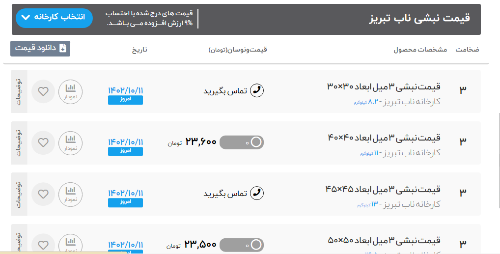 اعلام موجودی نبشی آهن یاب ❇️ لیست کالای فولاد ناب تبریز : 📅 دوشنبه : ۱۴۰۲/۱۰/۱۱ (ثبات قیمت) ♦️ نبشی ۴*۴ 💵23550 تومان ♦️نبشی ۵*۵ 💵23350 تومان ♦️ نبشی۶*۶ 💵23350 تومان