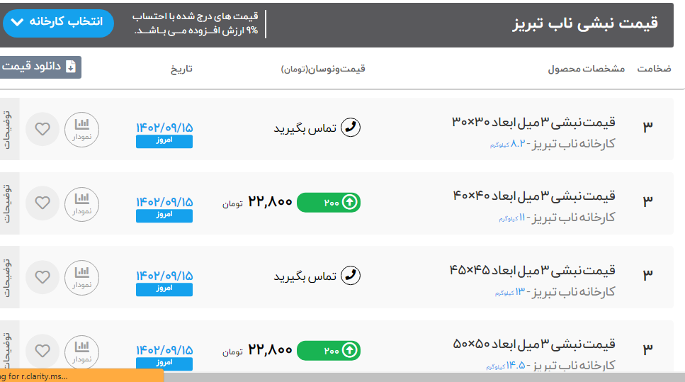 اعلام موجودی نبشی آهن یاب لیست کالای نبشی نورد آریان فولاد: 📅 چهارشنبه : ۱۴۰۲/۹/۱۵ (افزایش قیمت) ♦️ نبشی ۶*۶ 💵 22950 تومان 📈 150 ♦️ نبشی ۷*۷ 💵 22950 تومان 📈 150 ♦️نبشی ۸*۸ 💵 22950 تومان 📈 150 ♦️نبشی ۱۰*۱۰ 💵23100 تومان 📈 200 ♦️نبشی ۱۲*۱۲ 💵23100 تومان 📈 100