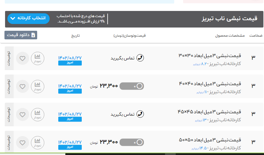 " فولاد جاوید بناب " با سلام و عرض ادب *قیمت روز شنبه ۱۴۰۲/۰۸/۲۷ 🔹نبشی 40*3 سبک : ۲۶۰۰۰۰ ریال 🔹نبشی 40*3 : ۲۳۵۰۰۰ ریال 🔹نبشی 40*4 سبک : ۲۳۵۵۰۰ ریال 🔹نبشی 40*4 : ۲۳۳۰۰۰ ریال 🔹نبشی 50*3 سبک : ۲۶۰۰۰۰ ریال 🔹نبشی 50*3 : ۲۳۵۰۰۰ ریال 🔹نبشی 50*4 سبک : ۲۳۷۰۰۰ ریال 🔹نبشی 50*4 : ۲۳۵۰۰۰ ریال 🔹نبشی 50*5 سبک : ۲۳۳۵۰۰ ریال 🔹نبشی 50*5 : ۲۳۲۰۰۰ ریال 🔹نبشی 60*3 : ۲۵۱۰۰۰ ریال 🔹نبشی 60*4 : ۲۴۲۰۰۰ ریال 🔹نبشی 60*5 : ۲۳۳۰۰۰ ریال 041-37780433-6 t.me/javidsteel_bonab www.javidsteel.co Telegram فولاد جاوید بناب فولاد جاوید بناب تولیدکننده انواع نبشی ومقاطع فولادی