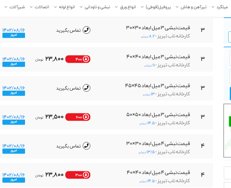 اعلام موجودی نبشی در انبار تهران