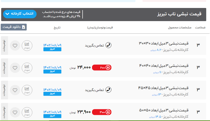 سهشنبه ۰۹ / آبان / ۱۴۰۲ 🗓 ▪️استعلام قیمت با تماس تلفنی▪️ 🔵موجودی نبشی انبار تهران 🔹نبشی ۳ اسپیرال اصفهان ( ۸ ك) 🔹نبشی ۳ شکفته سنگین ( ۸ ك) 🔹نبشی ۳ آی هان تهران ( ۷ ك) 🔹نبشی ۳ سپهر ( ۷ ك) .................................................. 🔹نبشی ۴ اسپیرال اصفهان ( ۱۴ ك) 🔹نبشی ۴ شکفته ( ۱۰/۵ ك) 🔹نبشی ۴ فولاد پارسه ( ۹ ك) 🔹نبشی ۴ فولاد سپهر ( ۹ ك) 🔹نبشی ۴ ابهر ( ۱۴ ك) 🔹نبشی ۴ آریان فولاد ( ۱۴ ك) .................................................. 🔹نبشی ۵ گ۵ زنجان ( ۲۲ ك) 🔹نبشی ۵ گ ۴ آریان فولاد ( ۱۸ ك) 🔹نبشی ۵ آریان فولاد ( ۲۲ ك) 🔹نبشی ۵ گ۳ پارسه ( ۱۵ ك) 🔹نبشی ۵ گ۴ پارسه ( ۱۸ ك) .................................................. 🔹نبشی ۶ گ ۵ شکفته ( ۲۷ ك) 🔹نبشی ۶ زنجان ( ۳۱ ك) 🔹نبشی ۶ گ۴ زنجان ( ۲۳ ك) 🔹نبشی ۶ گ۵ زنجان ( ۲۷ ك) .................................................. 🔹نبشی ۷ آریان فولاد ( ۴۴ ك) .................................................. 🔹نبشی ۸ آریان فولاد ( ۵۶ ك) 🔹نبشی ۸ حافظ یزد ( ۵۶ ك) 🔹نبشی ۸ سدید قم ( ۵۶ ك) 🔹نبشی ۸ گ۷ شکفته ( ۵۰ ك) .................................................. 🔹نبشی ۱۰ شکفته ( ۸۰ ك) 🔹نبشی ۱۰ آریان فولاد ( ۸۸ ك) 🔹نبشی۱۰ اشتهارد ( ۸۶ ك) 🔹نبشی۱۰ حافظ یزد ( ۸۳ ك) 🔹نبشی۱۰ گ۸ اشتهارد ( ۷۵ ك) .................................................. 🔹نبشی ۱۲ آریان فولاد ( ۱۳۳ ك) 🔹نبشی ۱۲ صبا استیل ( ۱۲۳ ك) .................................................. 🔹نبشی ۹ آریان فولاد (بلند) 🔹نبشی ۱۴ آریان فولاد (بلند) 🔹نبشی ۱۵ آریان فولاد (بلند) 🔹نبشی ۲۰ آریان فولاد (بلند) .................................................. موجودی سپری انبار تهران 🔹سپری ۳ نورد آسمان ( ۱۰ ك) 🔹سپری ۴ نوردآسمان ( ۱۵ ك) 🔹سپری ۴ شکفته ( ۱۵ ك) 🔹سپری ۵ نورد آسمان ( ۲۰ ك ) 🔹سپری ۵ شکفته ( ۲۱ ك) 🔹سپری ۶ نورد آسمان ( ۲۶ ك) 🔹سپری ۶ شکفته ( ۲۵ ك)