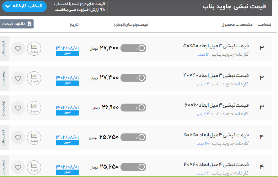 اعلام موجودی نبشی فولاد جاوید بناب " فولاد جاوید بناب " با سلام و عرض ادب *قیمت روز دوشنبه ۱۴۰۲/۰۸/۰۱ 🔹نبشی 40*3 سبک : ۲۷۳۰۰۰ ریال 🔹نبشی 40*3 : ۲۵۹۰۰۰ ریال 🔹نبشی 40*4 سبک : ۲۵۶۵۰۰ ریال 🔹نبشی 40*4 : ۲۵۶۰۰۰ ریال 🔹نبشی 50*3 سبک : ۲۷۳۰۰۰ ریال 🔹نبشی 50*3 : ۲۵۹۰۰۰ ریال 🔹نبشی 50*4 سبک : ۲۵۷۵۰۰ ریال 🔹نبشی 50*4 : ۲۵۷۰۰۰ ریال 🔹نبشی 50*5 سبک : ۲۵۶۵۰۰ ریال 🔹نبشی 50*5 : ۲۵۶۰۰۰ ریال 🔹نبشی 60*3 : ۲۶۹۰۰۰ ریال 🔹نبشی 60*4 : ۲۶۰۰۰۰ ریال 🔹نبشی 60*5 : ۲۵۷۰۰۰ ریال