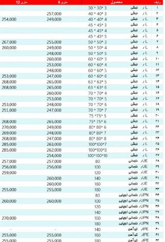 ✅ #شرکت_آسیا_فولاد_امین🔵لیست نبشی و ناودانی🔵((انبار تهران))🔴1402/05/07🔴 #نبشی_سپهر🔶نشی ۳ گوشت ۲/۵ سپهر:📞#نبشی_آیهان🔶نشی ۳ گوشت ۲/۵ آیهان:📞#نبشي_اشتهارد🔶نبشي ٤ گوشت ۳ اشتهارد:📞🔶نبشی ۱۰ گوشت ۱۰ اشتهارد: 📞 #نبشی_پارسه🔶نبشی ۴ گوشت ۳ پارسه : 📞#نبشی_ظهوریان🔶نبشی ۳ گوشت۳ ظهوریان:📞🔶نبشی ۴ گوشت ۳ ظهوریان:📞🔶نبشی ۵ گوشت ۳ ظهوریان:📞🔶نبشي ٨ گوشت ۷ ظهوریان: 📞#نبشی_شکفته🔶نبشی ۳ گوشت ۳ شکفته:📞#نبشی_آریان_فولاد🔶نبشی ۴ گوشت ۳ آریان فولاد:📞🔶نبشی ۴ گوشت ۴ آریان فولاد:📞🔶نبشی۵ گوشت ۴ آریان فولاد:📞🔶نبشی ۵ گوشت ۵ آریان فولاد:📞🔶نبشی ۶ گوشت ۵ آریان فولاد:📞🔶نبشی ۶ گوشت ۶ آریان فولاد:📞🔶نبشی ۷ گوشت ۷ آریان فولاد:📞🔶نبشی ۸ گوشت ۸ آریان فولاد:📞🔶نبشی ۱۰ گوشت ۱۰ آریان فولاد:📞🔶نبشی ۱۲ گوشت ۱۲ آریان فولاد:📞🔶نبشی ۱۵ گوشت ۱۵ آریان فولاد:📞 #نبشي_لقمه 🔶نبشی لقمه ۸ * ٨ :📞🔶نبشي لقمه ١٠* ١٠ :📞 ➖➖➖➖➖➖➖➖➖➖➖➖