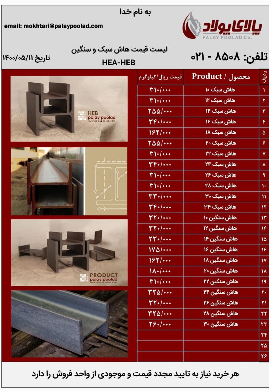 🗓 امروز سه شنبه 12 مرداد ماه ۱۴۰۰. ✅قیمت تیرآهن هاش (بنگاه اصفهان) ✅قیمت ها با تایید میباشد.