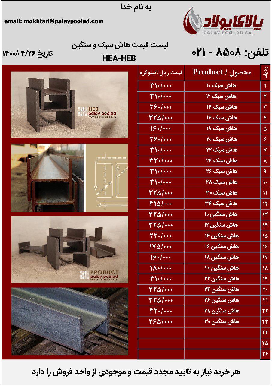تیرآهن هاش مرجع تخصصی توزیع آهن آلات اعلام قیمت 8508-021 مدیر فروش : مجتبی مختاری داخلی 400و401
