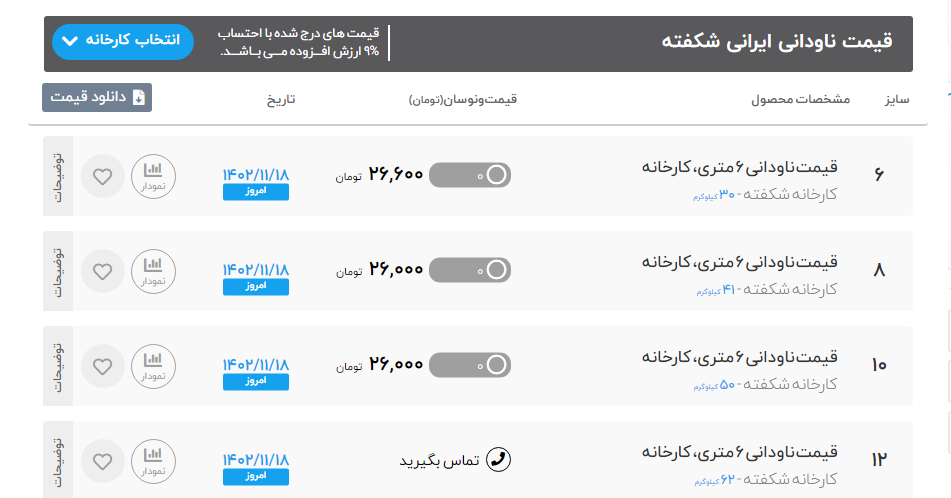ناودانی 6 سبک 21-22 کیلویی درجه یک و درجه 2 ناودانی 10 دوازده متری 100-104 کیلویی