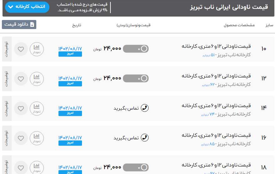 #قیمت #ناودانی #ناب_تبریز #کارخانه 🌎 سه شنبه 16 آبان ماه 1402 🌎 طول:6متر ناودانی 8 ⏪ 240000 ریال ناودانی 10 ⏪ 240000 ریال ناودانی 12 ⏪ 240000 ریال ناودانی 14 ⏪ 245000 ریال ناودانی 16 ⏪ 245000 ریال ✅تهران آهن خریدی امن,آسان,ارزان ✅کارشناس فروش : آقای قاجار 🔴 مشاهده قیمت ناودانی 🔴 (https://tehran-ahan.com/)⚙️برای مشاهده کامل جدول قیمت ناودانی می توانید به سایت تهران آهن مراجعه کنید: ✅(50 خط ویژه): ☎️021-86073000 📱 instagram.com/tehran.ahan 🌏 https://b2n.ir/r38781 🔗 t.me/Tehran_ahan
