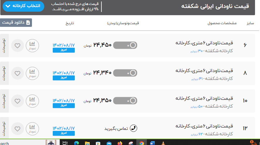 🔷موجودی ناودانی انبار تهران🔷 🔹ناودانی ۴ فابریک اروپایی ( ۱۳ ك) 🔹ناودانی ۴ اسپیرال ( ۱۷ ك) .................................................. 🔹ناودانی ۵ اسپیرال ( ۲۳ ك) .................................................. 🔹ناودانی ۶ اسپیرال ( ۳۰ ك) 🔹ناودانی ۶ شکفته سنگین ( ۲۹ ك) 🔹ناودانی ۶ ف.تهران سبک ( ۲۳ ك ) 🔹ناودانی ۶ ف.تهران سنگین ( ۲۸ ك ) .................................................. 🔹ناودانی ۸ شکفته سنگین ( ۴۳ ك) 🔹ناودانی ۸ ف.تهران سبک ( ۲۸ ك ) 🔹ناودانی ۸ سنگین فولاد.ت ( ۳۸ ك) 🔹ناودانی ۸ ماهان سنگین ( ۳۸ ك ) .................................................. 🔹ناودانی ۱۰ شکفته سنگین ( ۵۲ ك) 🔹ناودانی ۱۰ نصر تبریز سبک ( ۳۵ ك) 🔹ناودانی ۱۰ ف.تهران سبک ( ۳۷ ك) 🔹ناودانی ۱۰ ف.تهران سنگین ( ۴۸ ك) .................................................. 🔹ناودانی ۱۲ شکفته سنگین ( ۶۲ ك) 🔹ناودانی ۱۲ ناب تبریز ( ۶۰ ك) 🔹ناودانی ۱۲ سبک ماهان ( ۵۱ ك) .................................................. 🔹ناودانی ۱۴ شکفته سنگین ( ۷۵ ك) 🔹ناودانی ۱۴ ناب تبریز ( ۷۵ ك) .................................................. 🔹ناودانی ۱۶ شکفته سنگین ( ۸۵ ك) .................................................. 🔹ناودانی ۶/۵ اروپایی 🔹ناودانی ۸ هم وزن اروپا 🔹ناودانی ۱۰ فابریک وزن اروپا 🔹ناودانی ۱۲ فابریک وزناروپا 🔹ناودانی ۱۲ هم وزن اروپا 🔹ناودانی ۱۴ فابریک اروپا 🔹ناودانی ۱۶ بلندهم وزن 🔹ناودانی ۱۸ هم وزن اروپا 🔹ناودانی ۲۰ هم وزن اروپا 🔹ناودانی ۲۲ فایکو سنگین 🔹ناودانی ۲۴ فایکو سنگین 🔹ناودانی ۳۰ بلند سنگین ☎️ ۰۲۱-۵۵۵۳۴۲۲۹ 📱 ۰۹۱۲۰۲۳۷۱۲۲