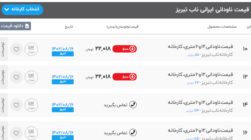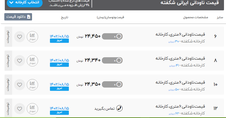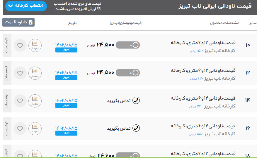 #قیمت #ناودانی #ناب_تبریز #کارخانه 🌎 دوشنبه 15 آبان ماه 1402 🌎 طول:6متر ناودانی 8 ⏪ 245000 ریال ناودانی 10 ⏪ 245000 ریال ناودانی 12 ⏪ 245000 ریال ناودانی 14 ⏪ 245000 ریال ناودانی 16 ⏪ 245000 ریال ✅تهران آهن خریدی امن,آسان,ارزان ✅کارشناس فروش : آقای قاجار 🔴 مشاهده قیمت ناودانی 🔴 ⚙️برای مشاهده کامل جدول قیمت ناودانی می توانید به سایت تهران آهن مراجعه کنید: ✅(50 خط ویژه): ☎️021-86073000 📱 instagram.com/tehran.ahan 🌏 https://b2n.ir/r38781 🔗 t.me/Tehran_ahan