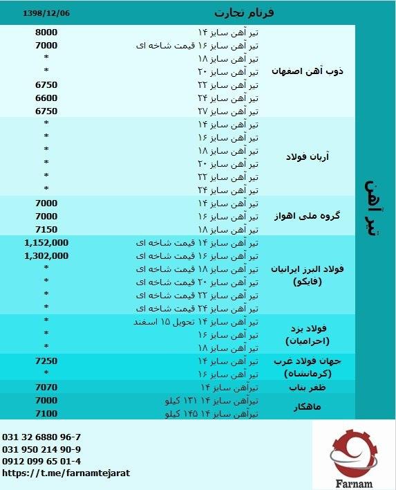 تیرآهن۱۴(۱۱۸kg)____ ۸/۸۰۰/۰۰۰ تيرآهن١٦(۱۶۷kg)____ ۱۱/۸۰۰/۰۰۰ تيرآهن١۸(۱۹۵kg)____ ۱۳/۸۰۰/۰۰۰ ۰۲۱۶۶۹۱۱۰۰۷
