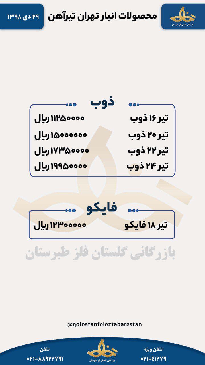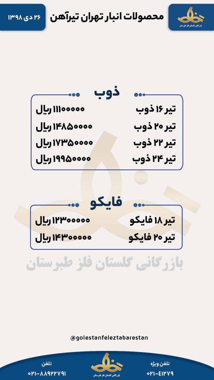 فولاد كوثر باران كارخانه فايكو (تيراهن) تيراهن ١٤ فايكو عدم توليد تيراهن ١٦ فايكو٩٥٢٠٠٠٠ تيراهن ١٨ فايكو عدم توليد تيراهن٢٠ ١٣٥٢٠٠٠٠ تيراهن ٢٢ ١٦٠٢٠٠٠٠ تيراهن ٢٤ ١٧٩٢٠٠٠٠ ((فروش با فاكتور رسمي)) 02133901620