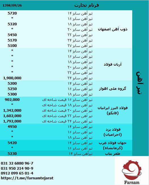 كارخانه فايكو (تيراهن) تیرآهن ۱۴ ۶٨٢٠٠٠٠ تیراهن ۱۶ تيراهن٢٠ ١٣٥٢٠٠٠٠ تيراهن ٢٢ ١٦٠٢٠٠٠٠ تيراهن ٢٤ ١٨٠٢٠٠٠٠ ((فروش با فاكتور رسمي)) 02133901620