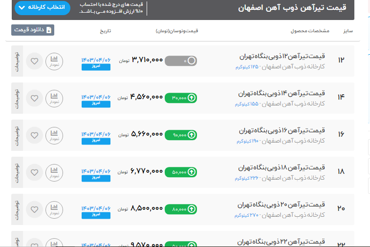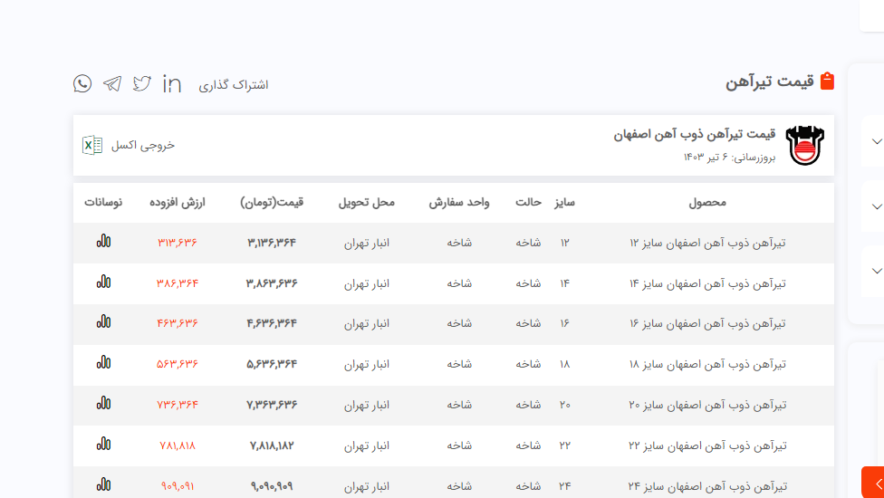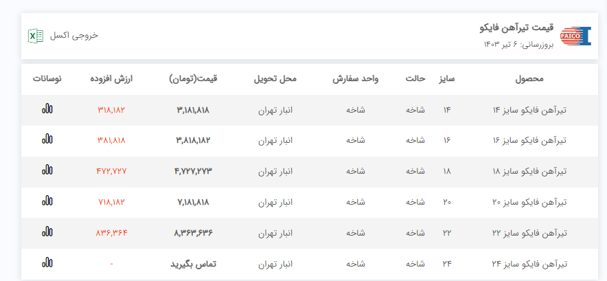 اعلام موجودی تیرآهن هاش