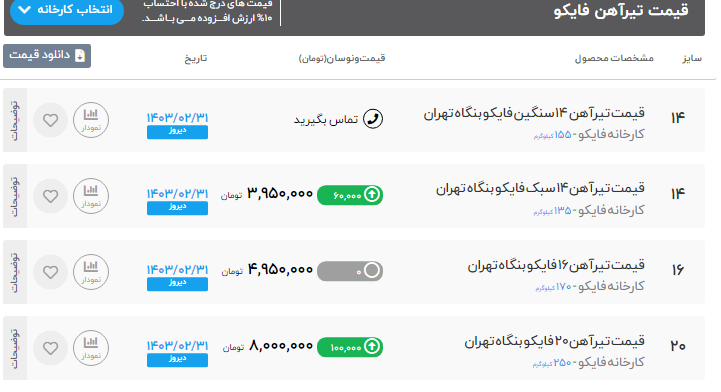 ⏱تاریخ : 1 خرداد 1403 📢 قیمت تیرآهن 🏗 محل تحویل : انبار تهران 📌ذوب آهن اصفهان 🔸12 | IPE | ==> 3,800,000 🔹14 | IPE | ==> 4,600,000 🔸16 | IPE | ==> 5,610,000 🔹18 | IPE | ==> 6,770,000 🔸20 | IPE | ==> 8,400,000 🔹22 | IPE | ==> 9,620,000 🔸24 | IPE | ==> 10,770,000 🔹27 | IPE | ==> 12,700,000 🔸30 | IPE | ==> 16,300,000 📌فولاد یزد - احرامیان 🔸14 | IPE | ==> 3,800,000 🔹16 | IPE | ==> 4,800,000 🔸18 | IPE | ==> 5,970,000 🔹20 | IPE | ==> 7,580,000 🔸22 | IPE | ==> 9,050,000 🔹24 | IPE | ==> 10,280,000 📌فایکو 🔸14 | IPE | ==> 3,910,000 🔹16 | IPE | ==> 5,000,000 🔸18 | IPE | ==> 5,990,000 🔹20 | IPE | ==> 8,050,000 🔸22 | IPE | ==> 9,470,000 📞 021-91006007 🌐 www.ahanak.com 🆔https://t.me/ahanak واتساپ 🔗 https://whatsapp.com/channel/0029VaI4g5YLo4hdP2UA2O2A