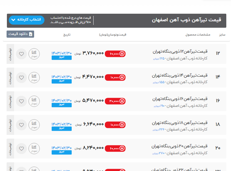 اعلام موجودی و قیمت روز تیرآهن در انبار دیجی اهن