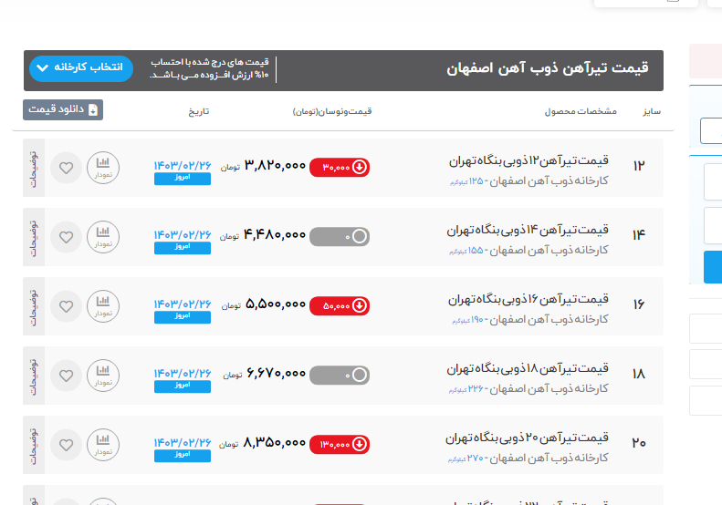 تیرآهن ذوب اهن اصفهان سایز 12 3/900/000 سایز 14 4/450/000 سایز 16 5/500/000 سایز 18 6/600/000 سایز 20 8/400/000 سایز 22 9/500/000 سایز 24 10/600/000 سایز 27 12/600/000 09131700713 https://t.me/Foolasachannel https://www.instagram.com/foolasa1?igsh=OGQ5ZDc2ODk2ZA==