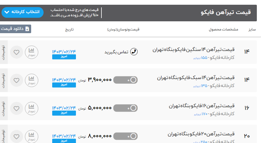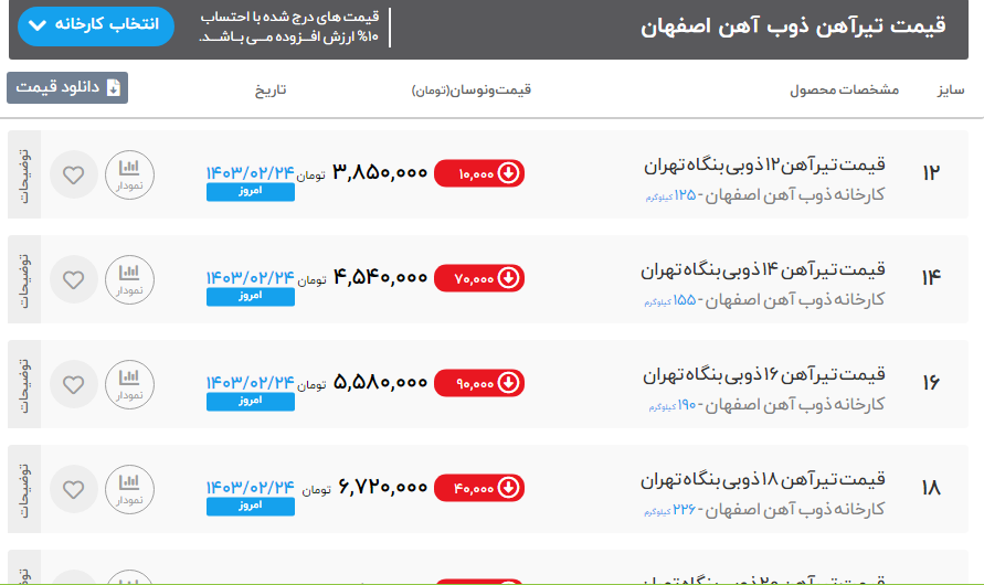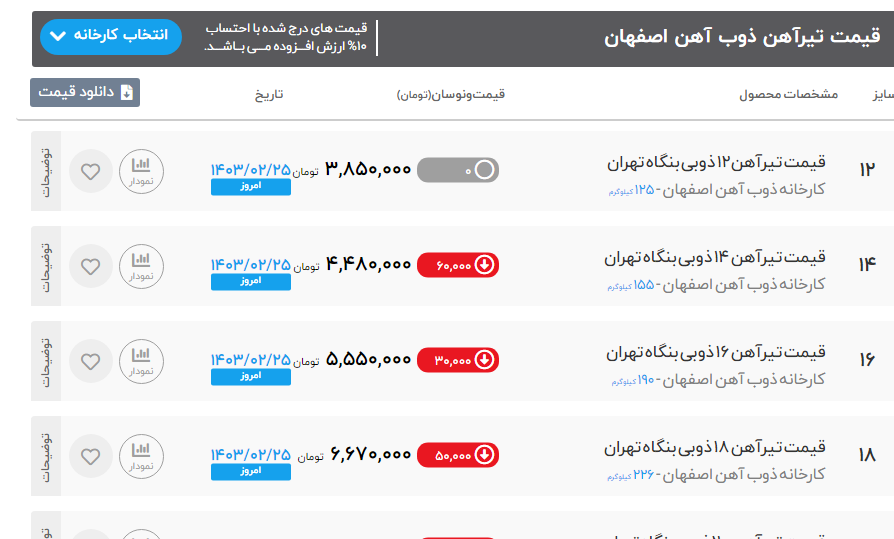 اعلام موجودی و قیمت روز تیرآهن در انبار دیجی آهن