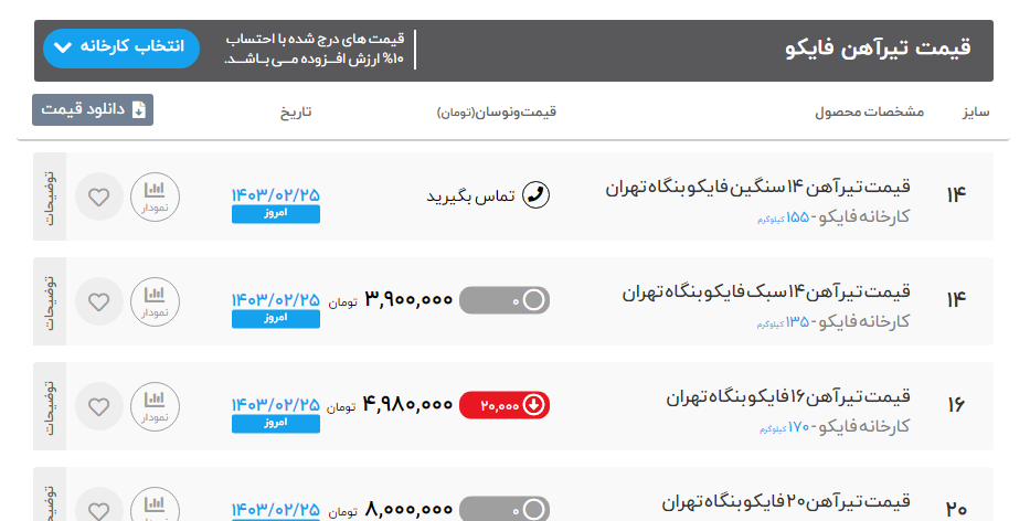 تیراهن ذوب آهن 14 16 و 18 و 20 و 22 و 24 و 27 موجود