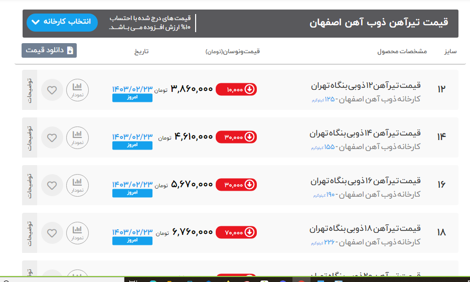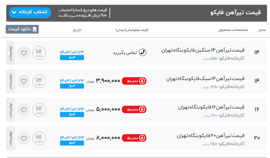 اعلام موجودی تیرآهن هاش