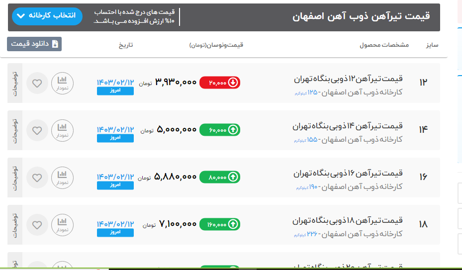 اعلام موجودی تعاونی اهن الات تهران چهارشنبه ۱۲ اردیبهشت تیرآهن ✅تیر ۱۲ ذوب آهن ۳۲۰.۰۰۰ ✅تیر ۱۴ ذوب آهن ۳۲۰.۰۰۰ ✅تیر ۱۶ ذوب آهن ۳۰۷.۰۰۰ ✅تیر ۱۸ ذوب آهن ۳۰۹.۰۰۰ ✅ تیر۲۲ ذوب آهن ۳۲۲.۰۰۰ ✅ تیر ۲۴ ذوب آهن ۳۰۶.۰۰۰ ✅تیر ۲۷ ذوب آهن ۳۰۶.۰۰۰