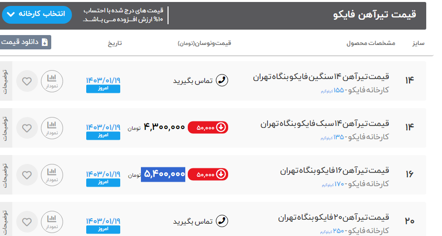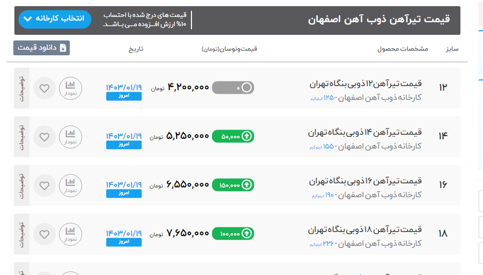 ⭐️ #تیرآهن 📍 تحویل: #بنگاه_تهران 🏭 #کارخانه_ذوب_آهن 📅 تاریخ : 1403/01/19 تیرآهن ١٢ ⬅️ ۴۲/۱۰۰/۰۰۰ تیرآهن ١٤ ⬅️ ۵۲/۶۰۰/۰۰۰ تیرآهن ١٦ ⬅️ ۶۵/۵۰۰/۰۰۰ تیرآهن ١٨ ⬅️ ۷۶/۶۰۰/۰۰۰ تیرآهن ٢٠ ⬅️ ۱۰۸/۰۰۰/۰۰۰ تیرآهن ٢٢ ⬅️ ۱۱۶/۱۰۰/۰۰۰ تیرآهن ٢٤ ⬅️ ۱۱۹/۱۰۰/۰۰۰ تیرآهن ٢٧ ⬅️ ۱۳۹/۱۰۰/۰۰۰ تیرآهن ٣٠ ⬅️ ۱۶۵/۱۰۰/۰۰۰ ✅کلیه قیمتها با تایید مجدد میباشند. 🌐 مشاهده لیست کامل قیمتها ⬅️. https://b2n.ir/g22357 ☎️ 1836 ☎️ 021 - 6299 9080 📞 (داخلی 505) ⭐️راحت بخرید، مطمئن بسازید