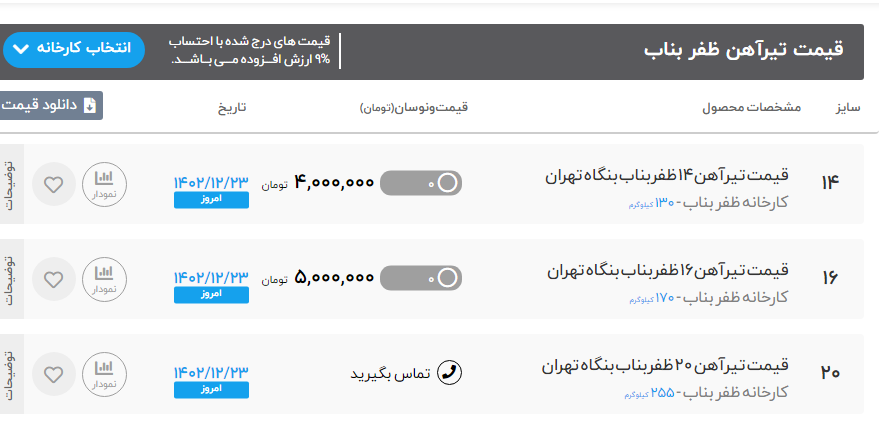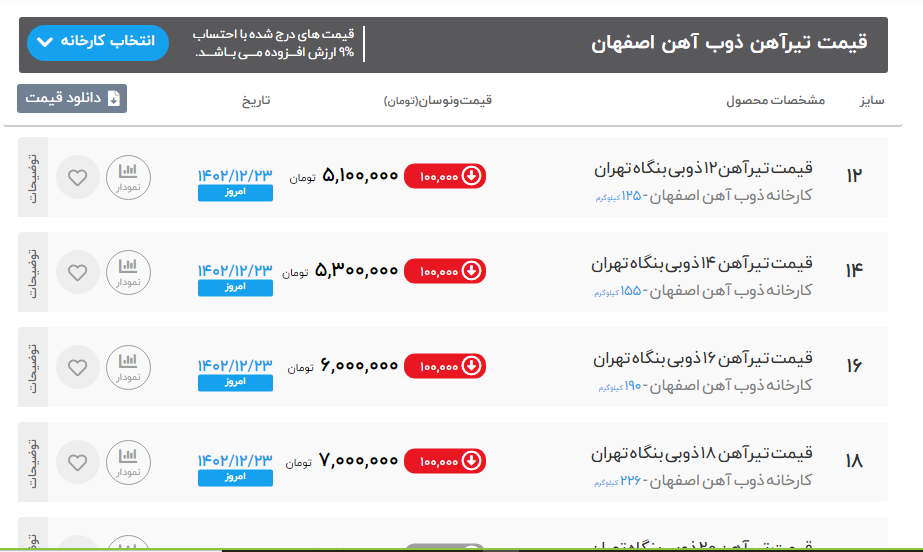 اعلام موجودی تیرآهن ذوب آهن اصفهان 23 اسفند 1402
