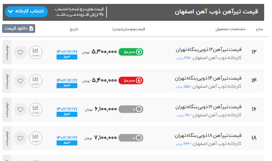 #تیرآهن_ذوبی_ شاخه انبار اصفهان تیر۱۴ تیر۱۶ تیر۱۸ تیر۲۰ تیر۲۲ تیر۲۴ تیر۲۷ تیر۳۰ قیمت ها به صورت تلفنی