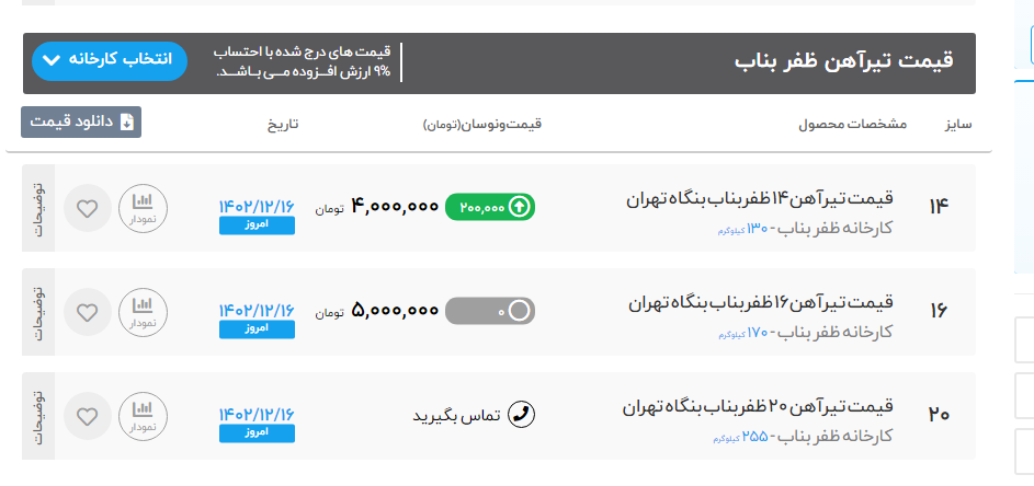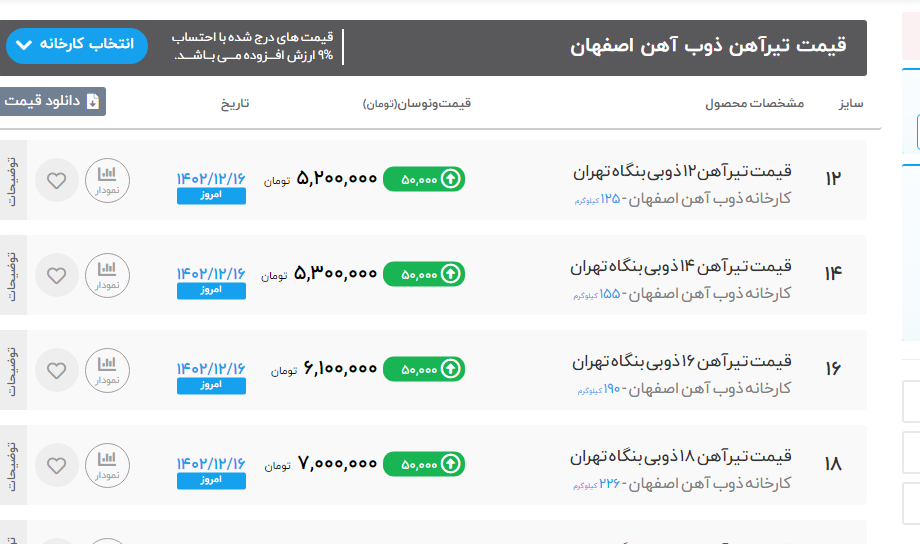 اعلام موجودی و قیمت روز تیرآهن در انبار دیجی آهن