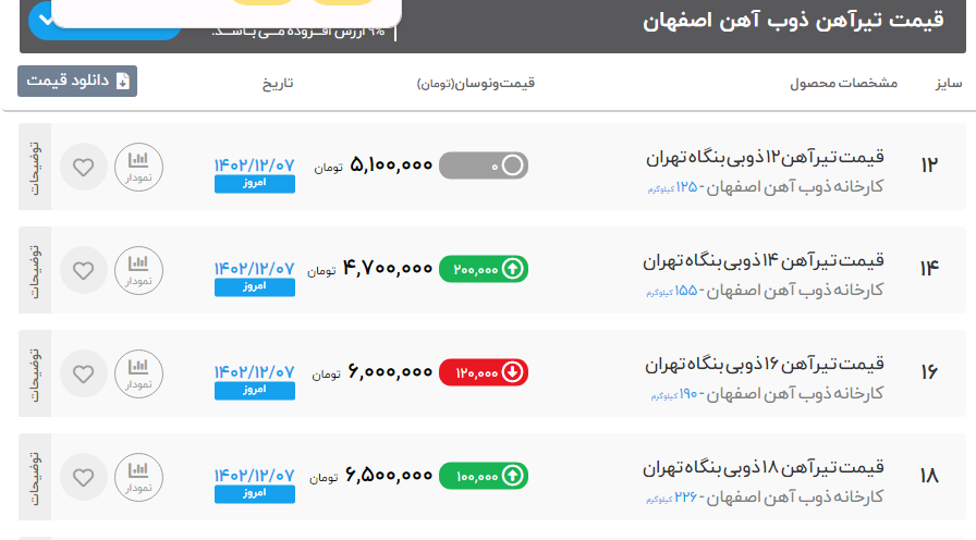 🗓 امروز سهشنبه ۰۸ اسفند ماه ۱۴۰۲ ✅قیمت انوع محصولات فولادی (بنگاه اصفهان) ✅قیمت ها با تایید میباشد. (انبار آهن آلات پورجم با باسکول تمام. الکترونیک 60تنی) راه های ارتباطی با ما : ☎️ 0314202 ☎️ 03133869211 ☎️ 03133869212 تیر آهن ذوب آهن 12 51,000,000 تیر آهن ذوب آهن 14 52,000,000 تیر آهن ذوب آهن 16 59,000,000 تیر آهن ذوب آهن 18 66,000,000 تیر آهن ذوب آهن20 100,000,000 تیر آهن ذوب آهن22 115,000,000 تیر آهن ذوب آهن24 122,000,000 تیر آهن ذوب آهن27 137,000,000 تیر آهن ذوب آهن30 160,000,000 ✅ کلیه محصولات، بارگیری سریع، آماده ارسال