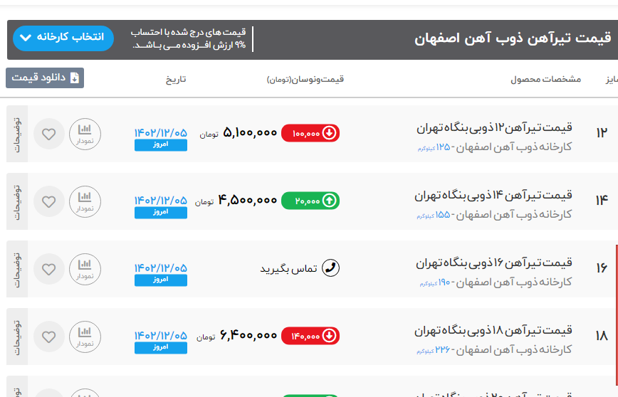 اعلام موجودی تیرآهن هاش