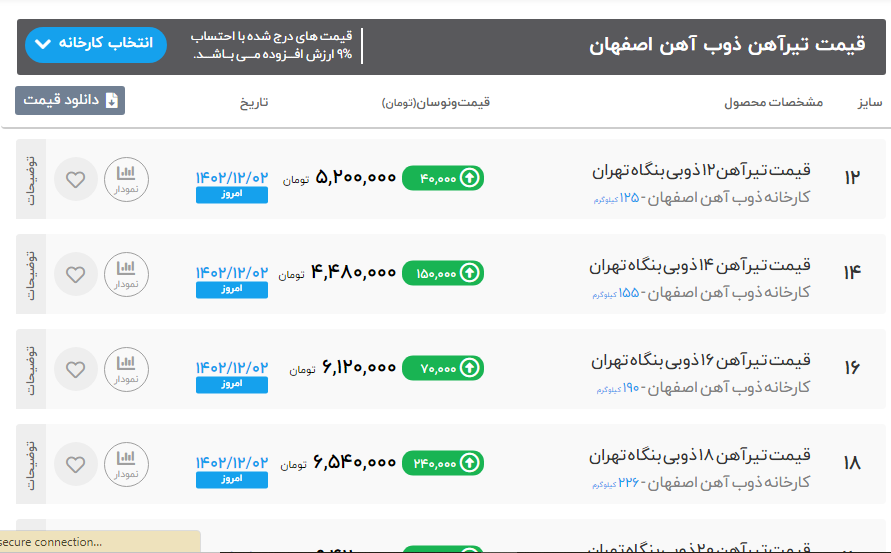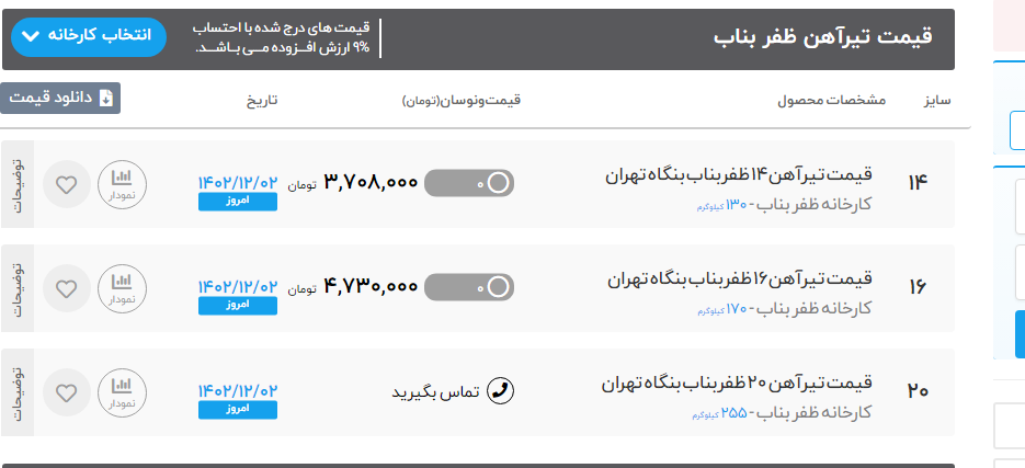 اعلام موجودی و قیمت روز تیرآهن در انبار دیجی اهن