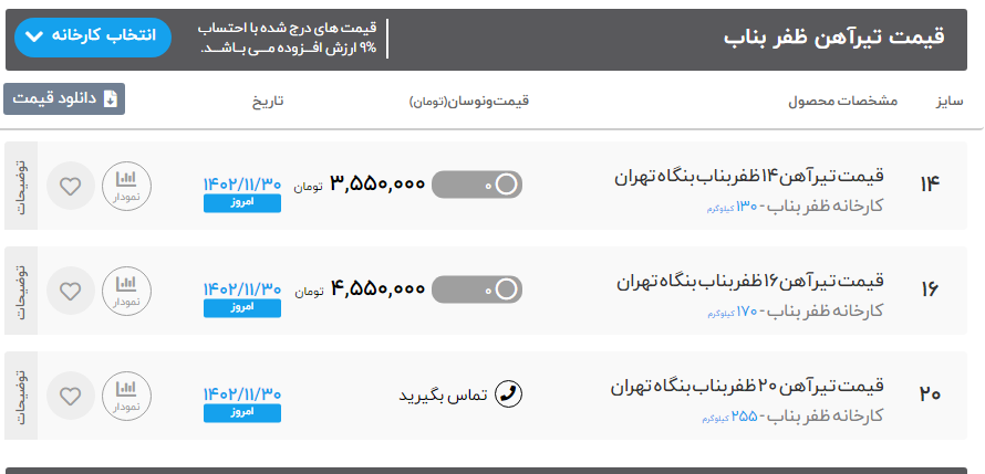 #قیمت #تیرآهن #فایکو 🌎 یکشنبه 29 بهمن ماه 1402 🌎 تیرآهن 14 ⏪ 37500000 ریال تیرآهن 16 ⏪ 47500000 ریال تیرآهن 18 ⏪ 56500000 ریال تیرآهن 20 ⏪ 75500000 ریال تیرآهن 22 ⏪ 89500000 ریال تیرآهن 24 ⏪ 109500000 ریال ✅تهران آهن خریدی امن,آسان,ارزان ✅کارشناس فروش : آقای قاجار 🔴 مشاهده قیمت تیرآهن فایکو 🔴 ⚙️برای مشاهده کامل جدول قیمت تیرآهن می توانید به سایت تهران آهن مراجعه کنید: ✅ (50 خط ویژه): ☎️021-86073000 📱 instagram.com/tehran.ahan 🌏 https://b2n.ir/p70862 🔗 t.me/Tehran_ahan