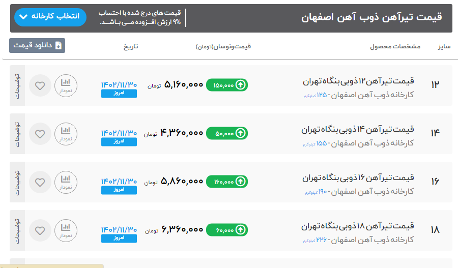 🗓یکشنبه 29 بهمن ماه 1402 🔴 تیرآهن ذوب آهن اصفهان 🟠تیرآهن 14 ذوبی: 4،250،000 تومان 🟠تیرآهن 16 ذوبی: 5،750،000 تومان 🟠تیرآهن 18 ذوبی: 6،330،000 تومان #تیرآهن #انبار_کارخانه مشاهده لیست قیمت : https://pivan.co/brands/introduction-of-isfahan-steel-factory/iron-girder/ ✅ثبت سفارش،مشاوره و ارتباط با کارشناسان فروش: 🌐Pivan.co ☎️021-45171 ✅کانال تلگرام https://t.me/Pivan_co