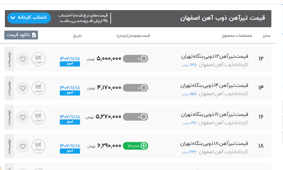 هاش ۲۰ سنگین نرمال ذوب آهن انبار اصفهان موجود