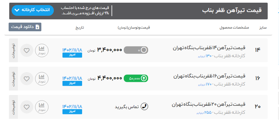 اعلام موجودی تیرآهن فولاد 369 🔷 فولاد 369 🔷 ⏱تاریخ : 18 بهمنماه 1402 📜 تیرآهن ذوب آهن اصفهان 📜 🏭 محل بارگیری : کارخانه ◼️ 14 ▫️ تماس ◼️ 16 ▫️ تماس ◼️ 18 ▫️ تماس ◼️ 20 ▫️ تماس ◼️ 22 ▫️ تماس ◼️ 24 ▫️ تماس ◼️ 27 ▫️ تماس ◼️ 30 ▫️ تماس با تایید موجودی 📞 021-22210369 📞 021-22241369 📜 داخلی 106 🌐 www.foolad369.com 🆔https://t.me/foollad369