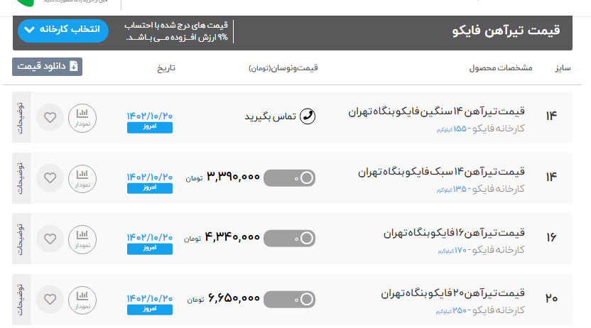 #قیمت #تیرآهن #فایکو 🌎 چهارشنبه 20 دی ماه 1402 🌎 تیرآهن 14 ⏪ 34000000 ریال تیرآهن 16 ⏪ 44000000 ریال تیرآهن 18 ⏪ 53000000 ریال تیرآهن 20 ⏪ 68000000 ریال تیرآهن 22 ⏪ 82000000 ریال تیرآهن 24 ⏪ 97000000 ریال ✅تهران آهن خریدی امن,آسان,ارزان ✅کارشناس فروش : آقای قاجار 🔴 مشاهده قیمت تیرآهن فایکو 🔴 ⚙️برای مشاهده کامل جدول قیمت تیرآهن می توانید به سایت تهران آهن مراجعه کنید: ✅ (50 خط ویژه): ☎️021-86073000 📱 instagram.com/tehran.ahan 🌏 https://b2n.ir/p70862 🔗 t.me/Tehran_ahan