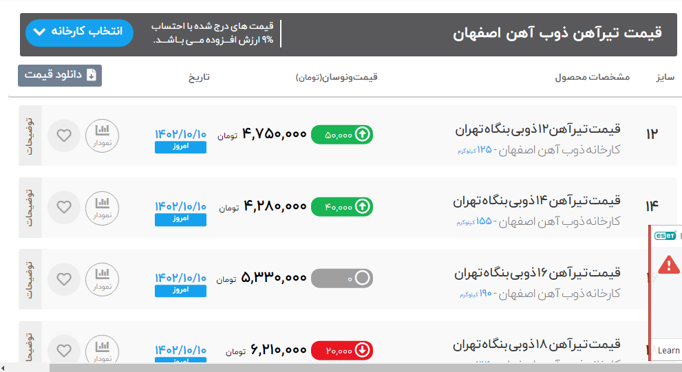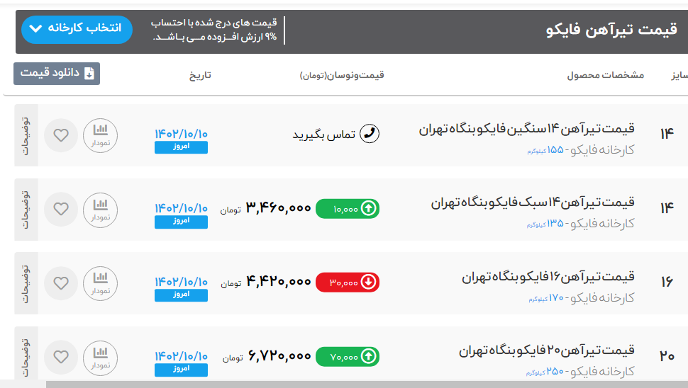 🗓 امروز یکشنبه ۱۰ دی ماه ۱۴۰۲ ✅قیمت انوع محصولات فولادی (بنگاه اصفهان) ✅قیمت ها با تایید میباشد. (انبار آهن آلات پورجم با باسکول تمام. الکترونیک 60تنی) راه های ارتباطی با ما : ☎️ 0314202 ☎️ 03133869211 ☎️ 03133869212 تیر آهن ذوب آهن 12 50,000,000 تیر آهن ذوب آهن 14 43,500,000 تیر آهن ذوب آهن 16 52,500,000 تیر آهن ذوب آهن 18 62,000,000 تیر آهن ذوب آهن20 85,000,000 تیر آهن ذوب آهن22 101,000,000 تیر آهن ذوب آهن24 115,000,000 تیر آهن ذوب آهن27 134,000,000 تیر آهن ذوب آهن30 165,000,000