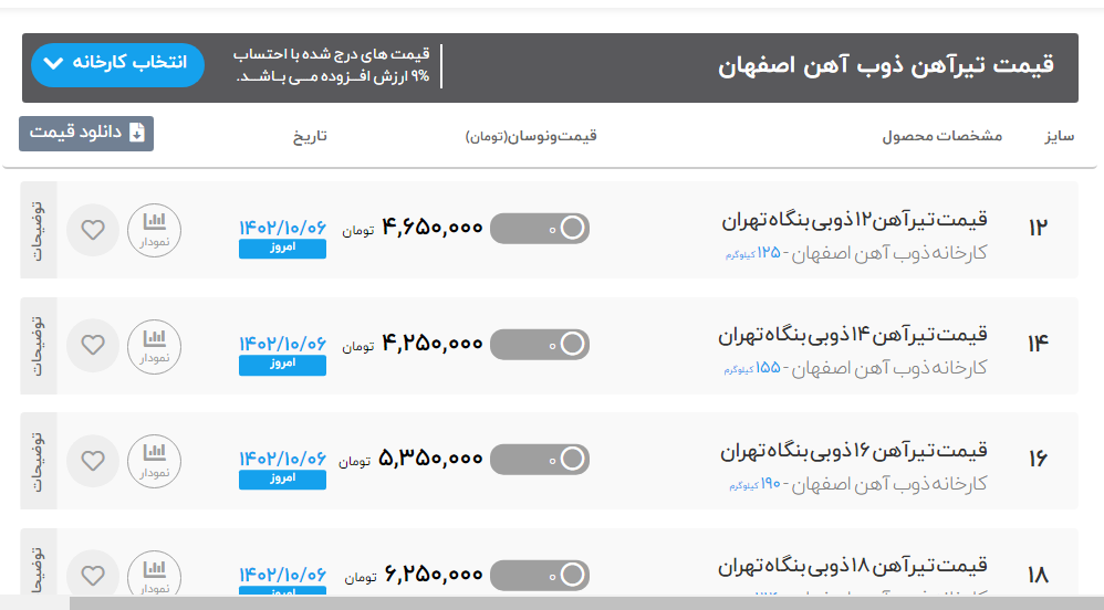 اعلام موجودی تیرآهن