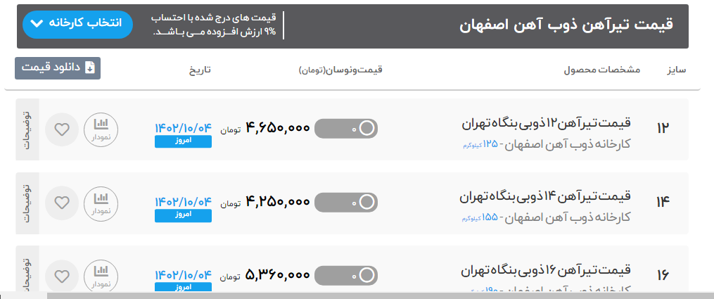 #تیرآهن_ذوبی_ شاخه انبار اصفهان تیر۱۲ ۴۶۰۰۰۰۰۰ ریال تیر۱۴ ۴۳۰۰۰۰۰۰ ریال تیر۱۶ ۵۴۵۰۰۰۰۰ ریال تیر۱۸ ۶۳۰۰۰۰۰۰ ریال تیر۲۰ ۸۲۰۰۰۰۰۰ ریال تیر۲۲ ۰۰۰۰۰۰۰۰ تیر۲۴ ۱۱۳۰۰۰۰۰۰ ریال تیر۲۷ ۱۲۸۰۰۰۰۰۰ ریال تیر۳۰ ۱۵۱۰۰۰۰۰۰ ریال قیمت ها با تایید تلفنی