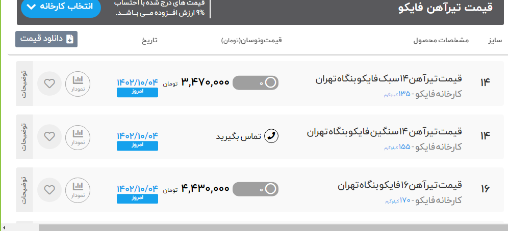 کارخانه فایکو تیرآهن ۲۰ تیرآهن ۲۲ قیمت تلفنی
