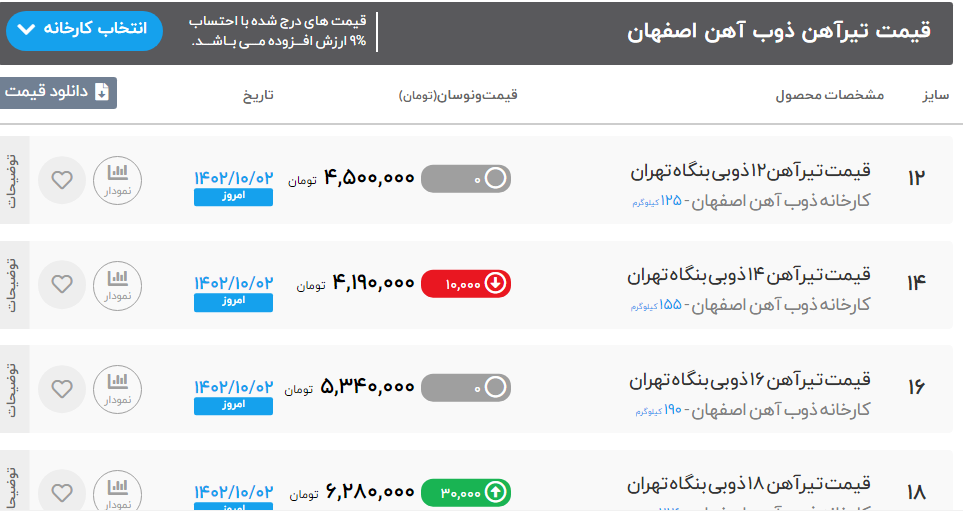 #قیمت #تیرآهن #فایکو 🌎 شنبه 02 دی ماه 1402 🌎 تیرآهن 14 ⏪ 35000000 ریال تیرآهن 16 ⏪ 45000000 ریال تیرآهن 18 ⏪ 55000000 ریال تیرآهن 20 ⏪ 68000000 ریال تیرآهن 22 ⏪ 85000000 ریال تیرآهن 24 ⏪ 98000000 ریال ✅تهران آهن خریدی امن,آسان,ارزان ✅کارشناس فروش : آقای قاجار 🔴 (https://tehran-ahan.com/)مشاهده قیمت تیرآهن فایکو (https://tehran-ahan.com/product-category/faico-beams/?utm_source=telegram&utm_medium=social&utm_campaign=faico-beams) 🔴 (https://tehran-ahan.com/)⚙️برای مشاهده کامل جدول قیمت تیرآهن می توانید به سایت تهران آهن مراجعه کنید: ✅ (50 خط ویژه): ☎️021-86073000 📱 instagram.com/tehran.ahan 🌏 https://b2n.ir/p70862 🔗 t.me/Tehran_ahan