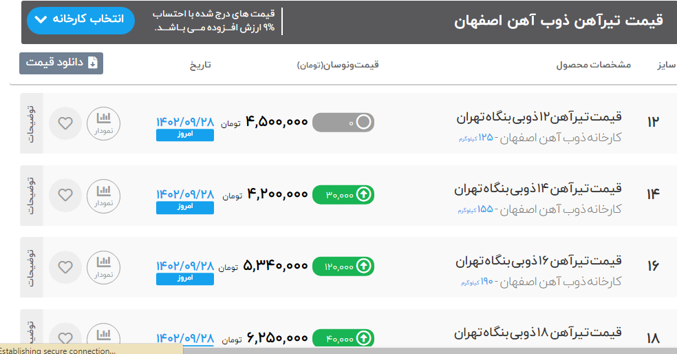 تیرآهن ۱۴ ذوبی کارخانه موجود قیمت:توافقی 📞031-331900000